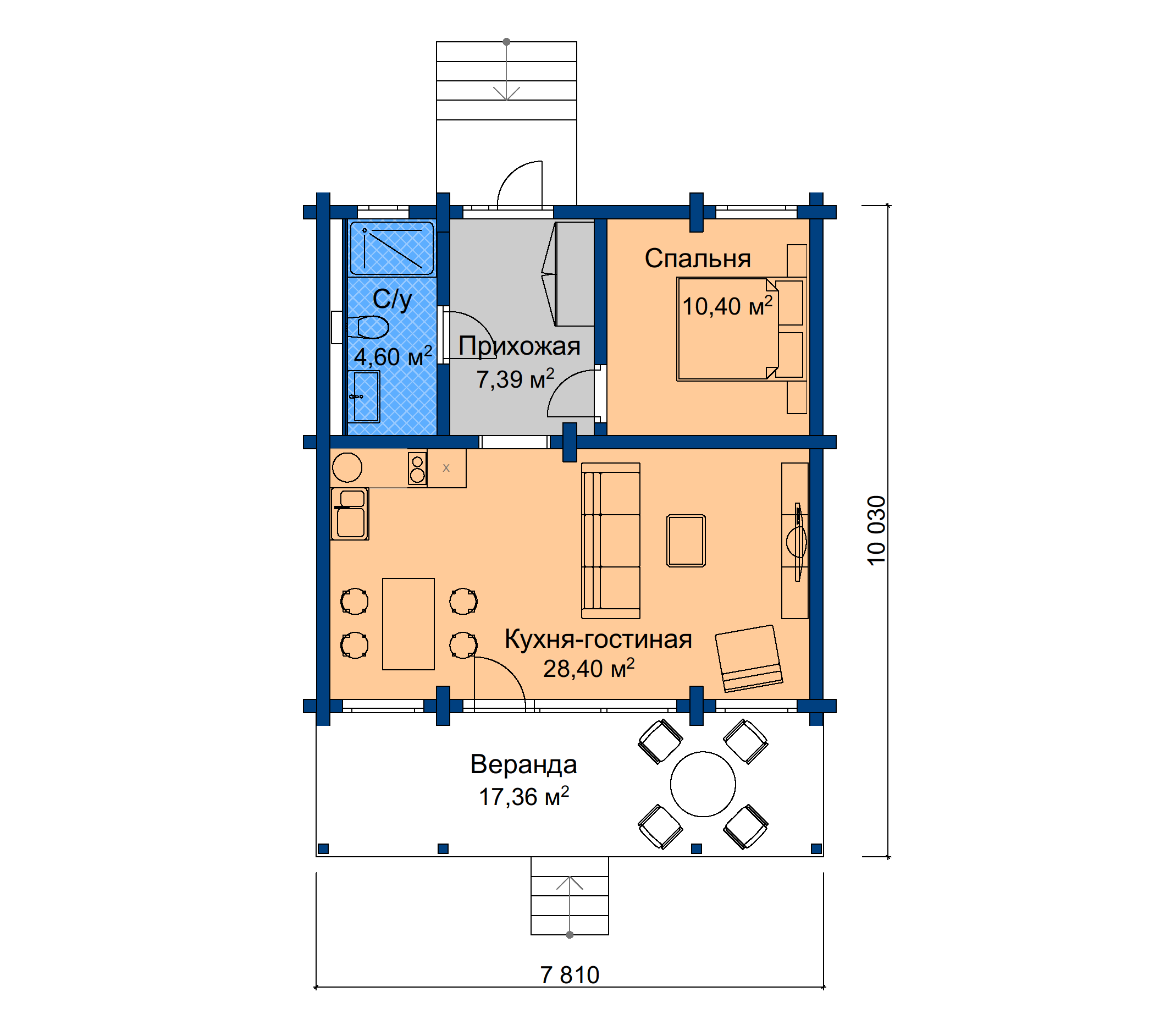 Проект гостевого дома из клееного бруса - Тарусянка 64 - планировка первого этажа